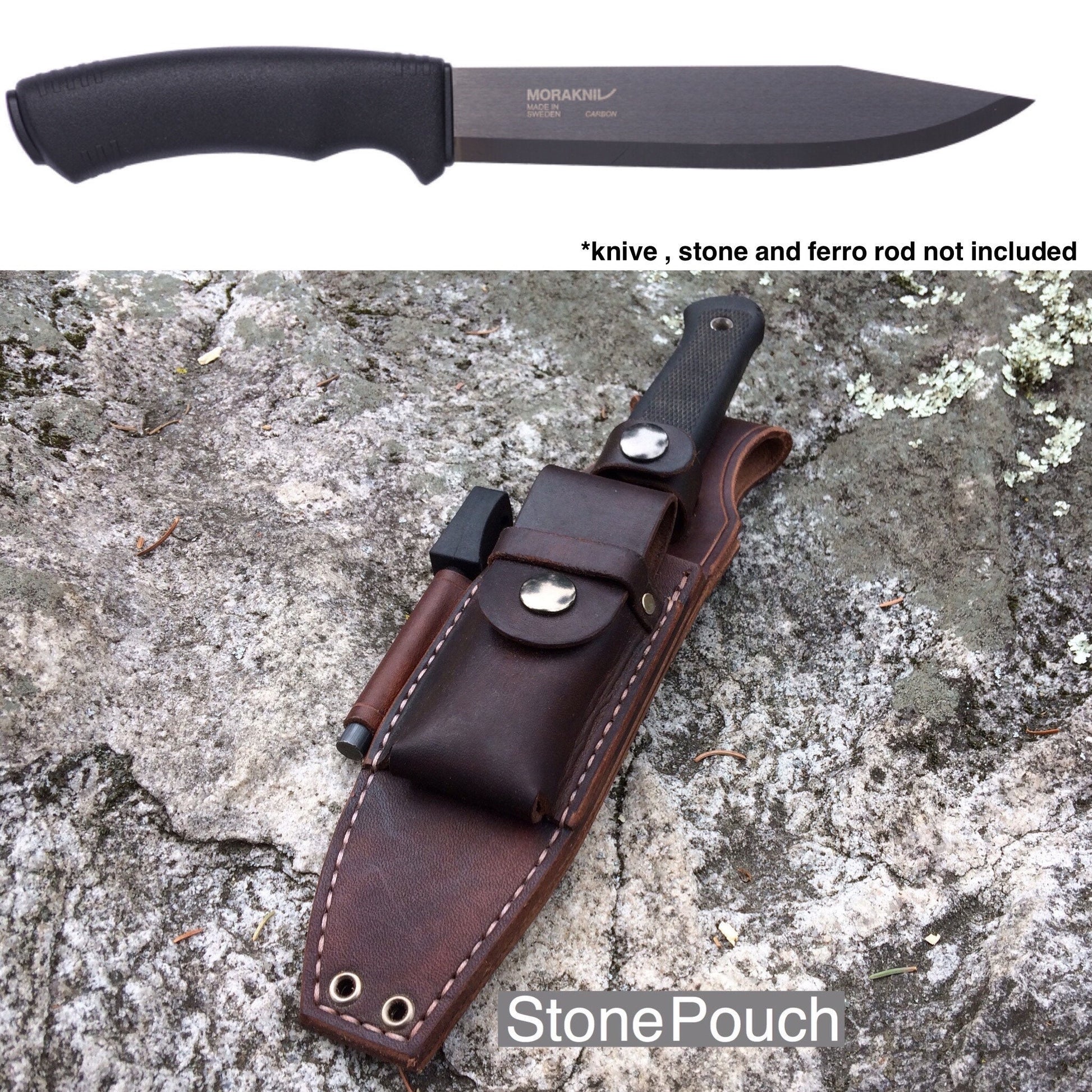Fit's 5/16 Ferro rod , stone pouch fits a DC4 sharpening stone or other choices for tinder .