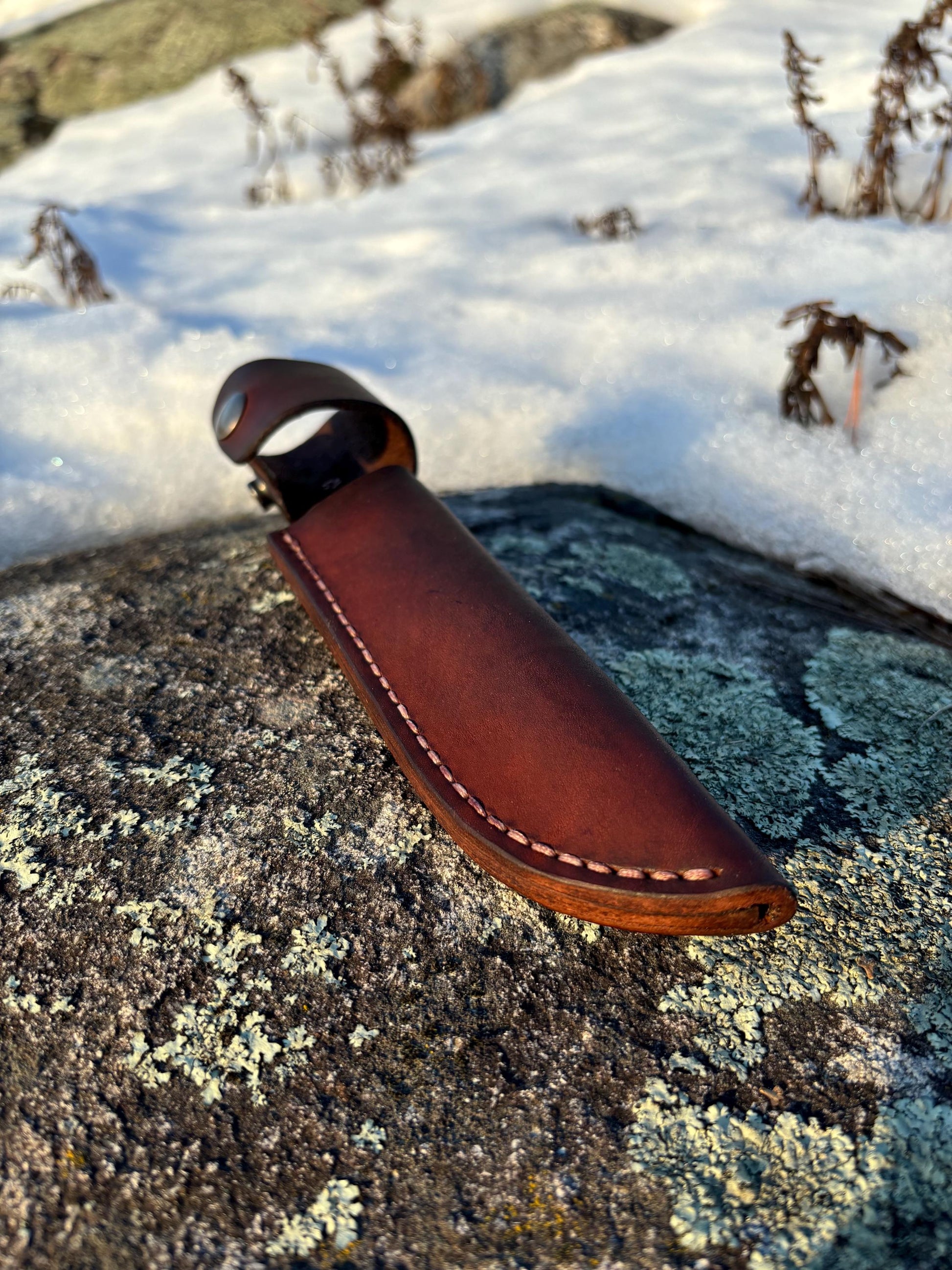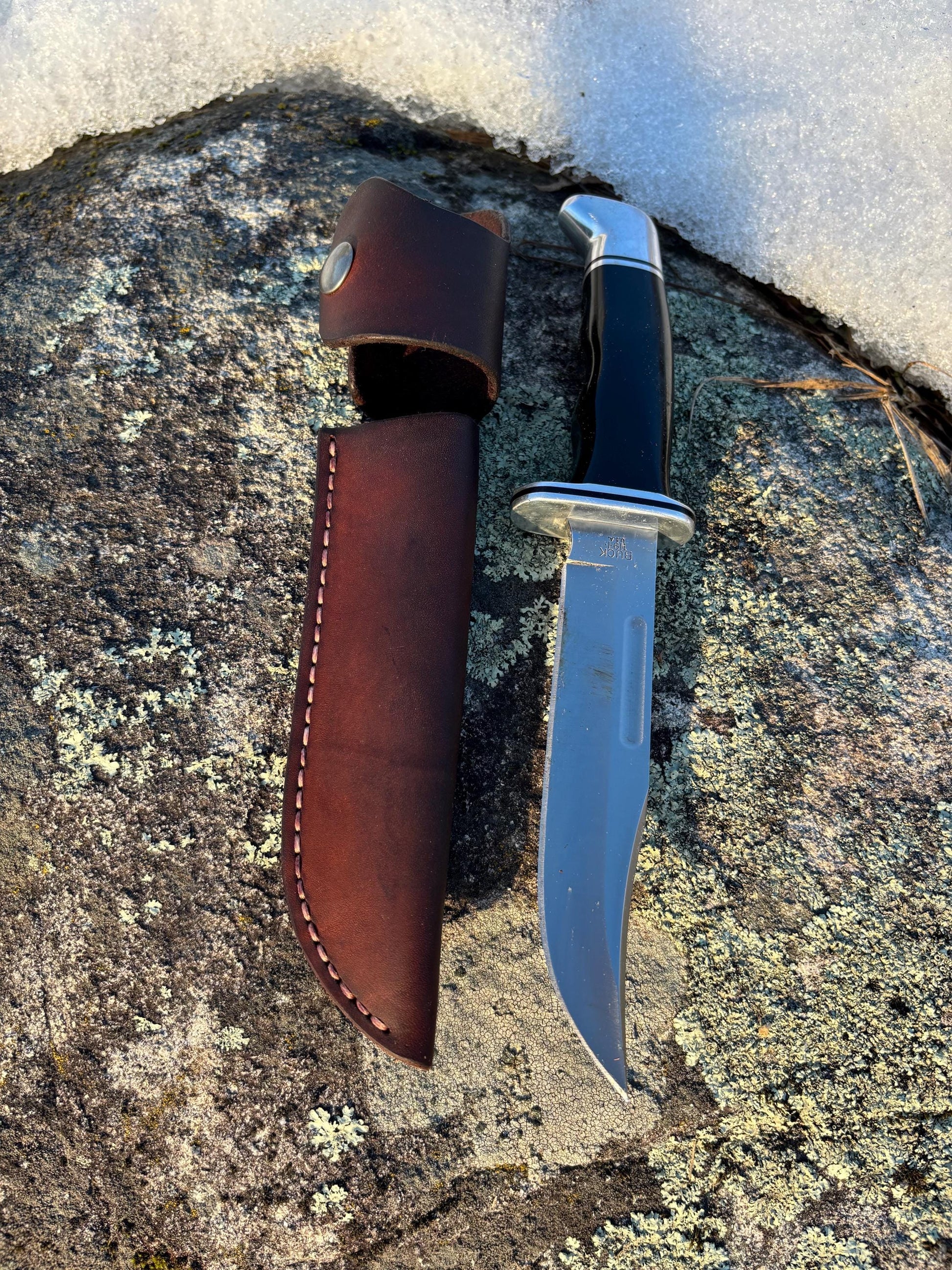 Classic standard sheath made for the Buck 119 using top grain veg tanned leather.